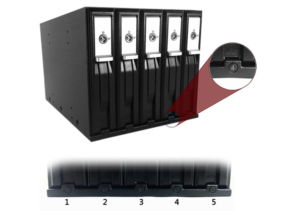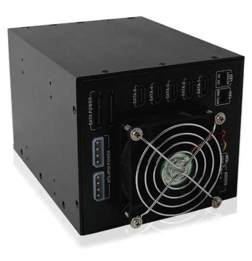 High capacity Supports 5 x 3.5" SATA HDD in 3 x 5.25" space. Maximum capacity up to 30TB (6TB*5) |